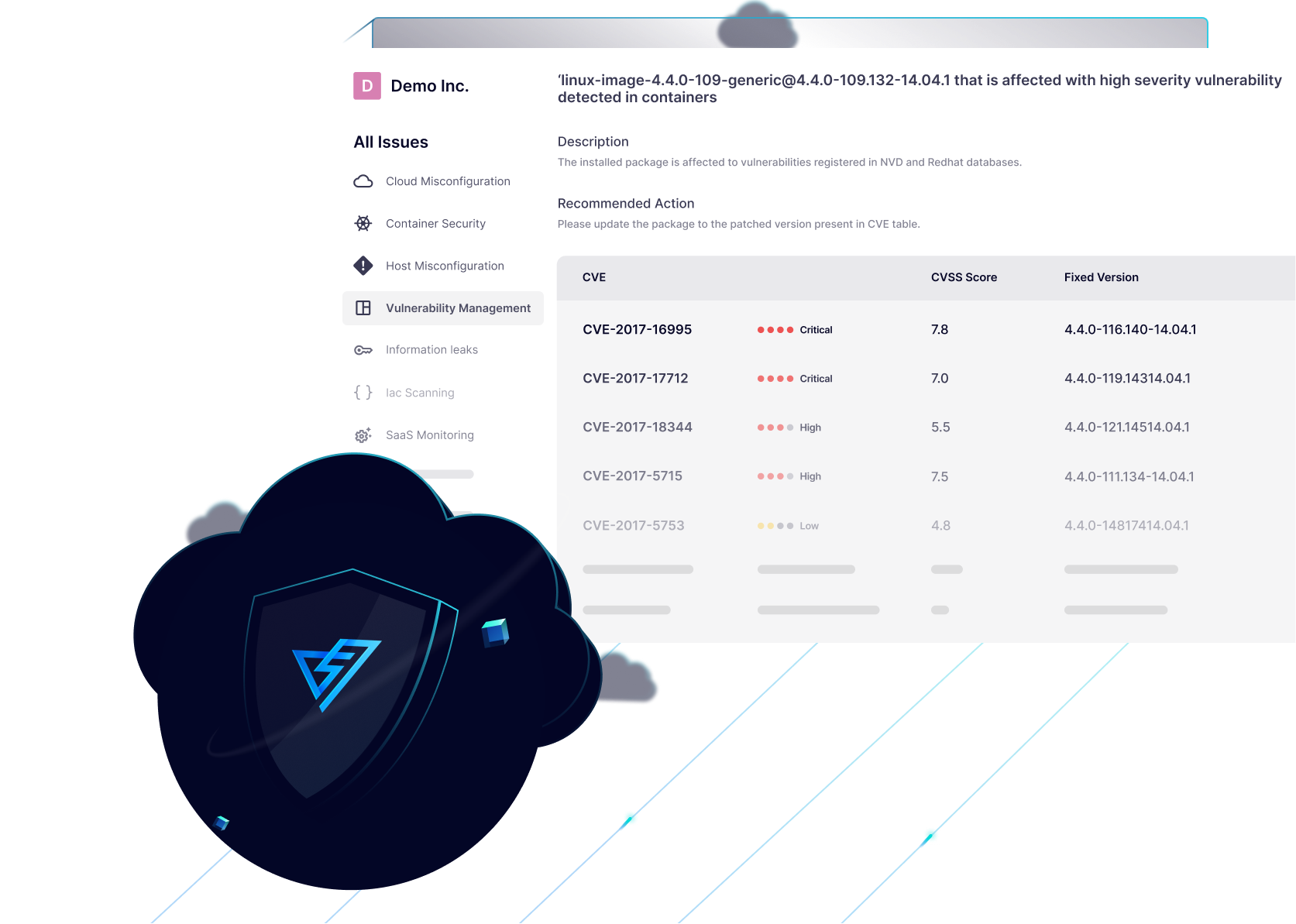 Our solution continuously assesses and monitors your cloud workloads to help keep your infrastructure secure. This includes regular checks for vulnerabilities in OS packages, libraries and running applications, and identifying potential security risks. By continuously monitoring your workloads, our product helps you identify and address issues quickly, ensuring that your systems remain secure at all times.
